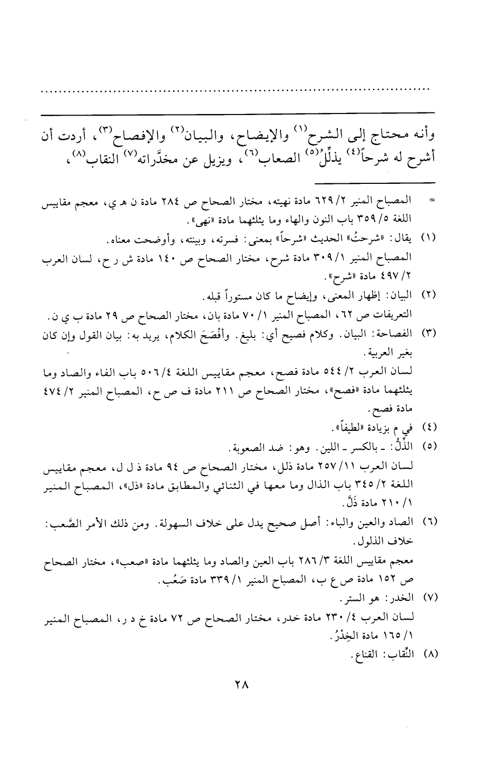 وأنه محتاج إلى الشرح (¬١) والإيضاح، والبيان (¬٢) والإفصاح (¬٣)، أردت أن أشرح له شرحًا (¬٤) يذلِّلُ (¬٥) الصعاب (¬٦)، ويزيل عن مخدَّراته (¬٧) النقاب (¬٨)،