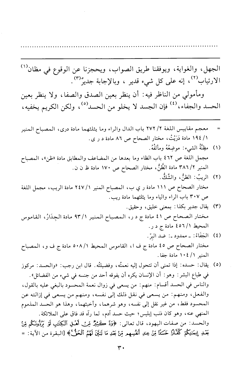 (¬٥) يقال: حسده: إذا تمنى أن تتحول إليه نعمتُه، وفضيلتُه. قال ابن رجب: "والحسد: مركوز في طباع البشر: وهو: أن الإنسان يكره أن يفوقه أحد من جنسه في شيء من الفضائل".