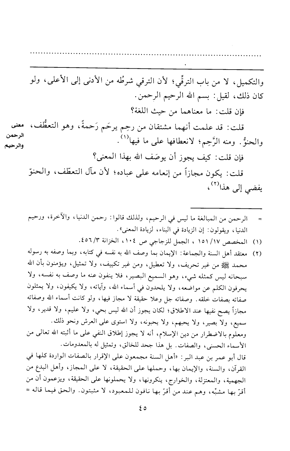 ومعلوم بالاضطرار من دين الإسلام، أنه لا يجوز إطلاق النفي على ما أثبته الله تعالى من الأسماء الحسنى، والصفات. بل هذا جحد للخالق، وتمثيل له بالمعدومات.