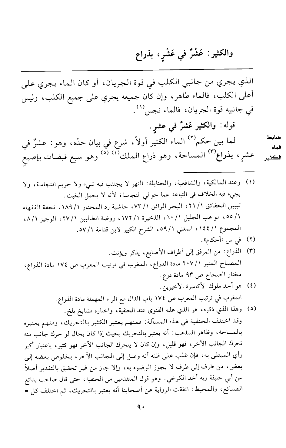 لما بين حكم (¬٢) الماء الكثير أولًا، شرع في بيان حدّه، وهو: عشرٌ في عشرٍ، بذراع (¬٣) المساحة، وهو ذراع الملك (¬٤) (¬٥) وهو سبع قبضات بإصبعٍ