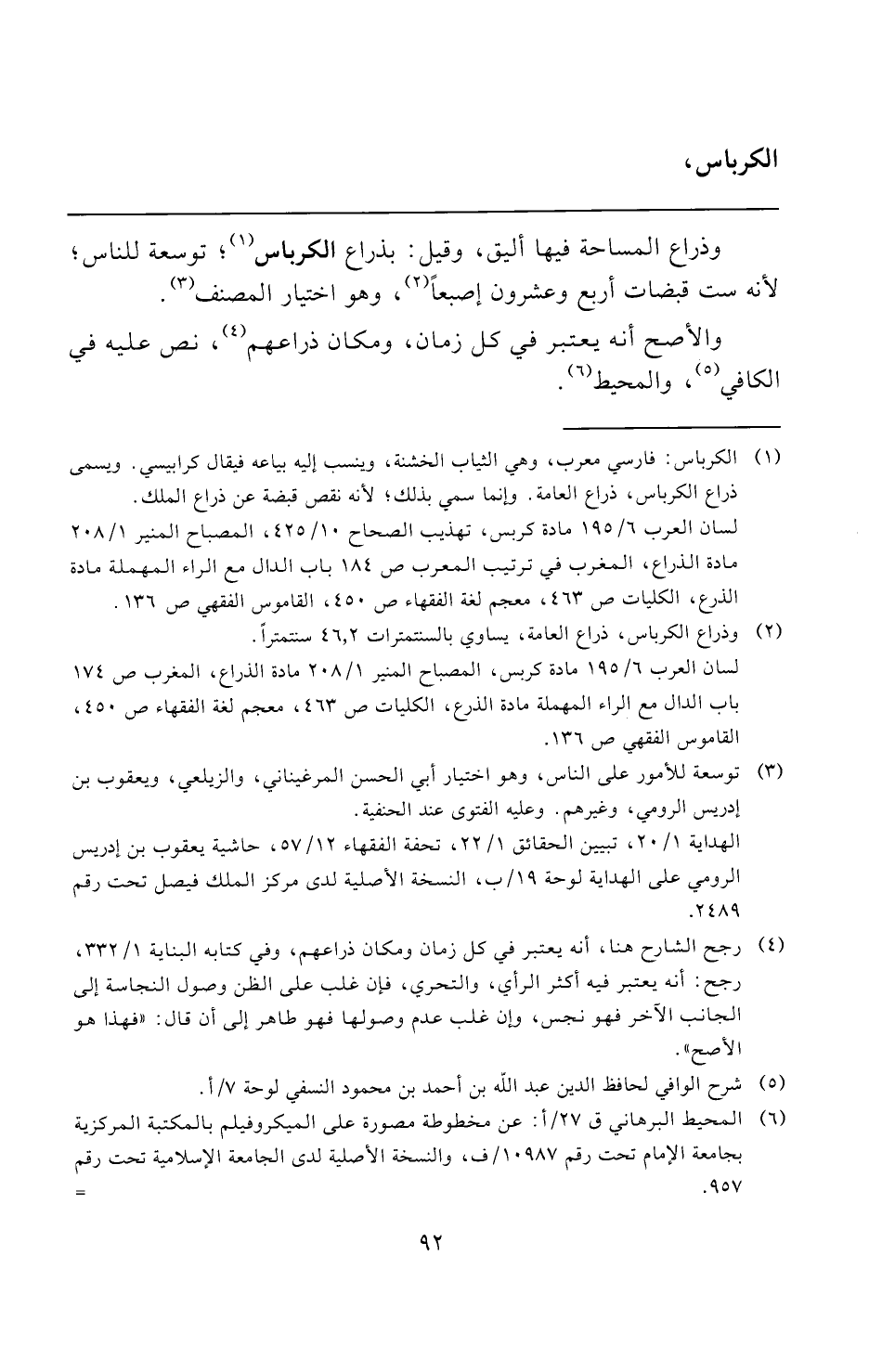 لسان العرب ٦/ ١٩٥ مادة كربس، المصباح المنير ١/ ٢٠٨ مادة الذراع، المغرب ص ١٧٤ باب الدال مع الراء المهملة مادة الذرع، الكليات ص ٤٦٣، معجم لغة الفقهاء ص ٤٥٠، القاموس الفقهي ص ١٣٦.