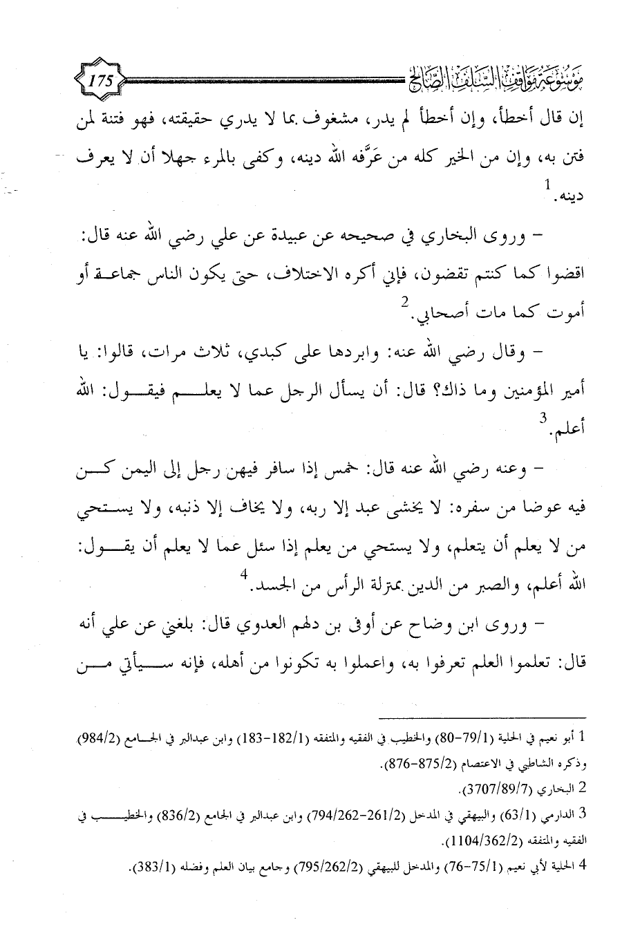 (¬4) الحلية لأبي نعيم (1/ 75 - 76) والمدخل للبيهقي (2/ 262/795) وجامع بيان العلم وفضله (1/ 383).