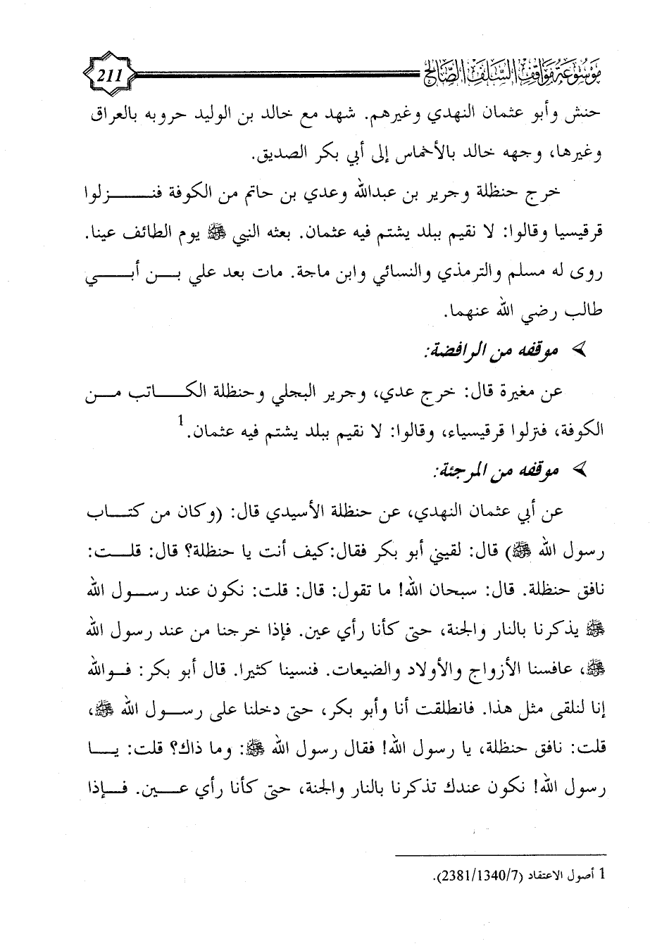 (¬1) أصول الاعتقاد (7/ 1340/2381).