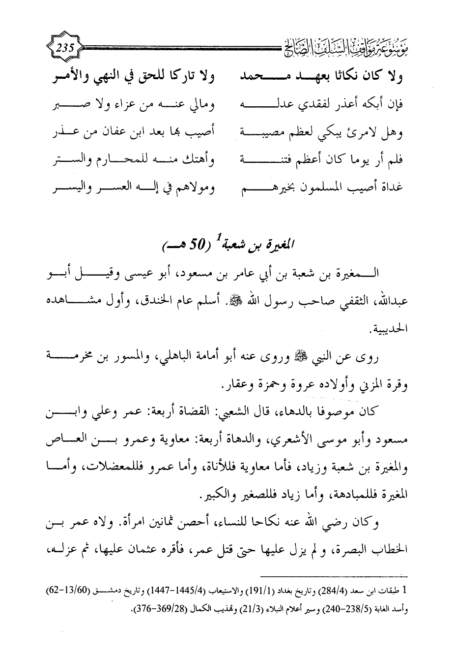 المُغيرَة بن شُعْبَة بن أبي عامر بن مسعود، أبو عيسى وقيل أبو عبد الله، الثقفي صاحب رسول الله - صلى الله عليه وسلم -. أسلم عام الخندق، وأول مشاهده الحديبية.