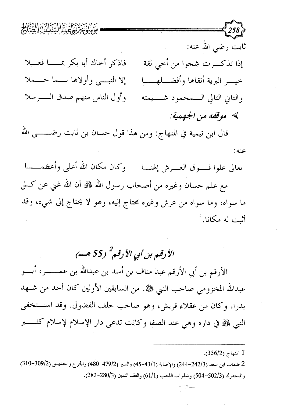 قال ابن تيمية في المنهاج: ومن هذا قول حسان بن ثابت رضي الله عنه: