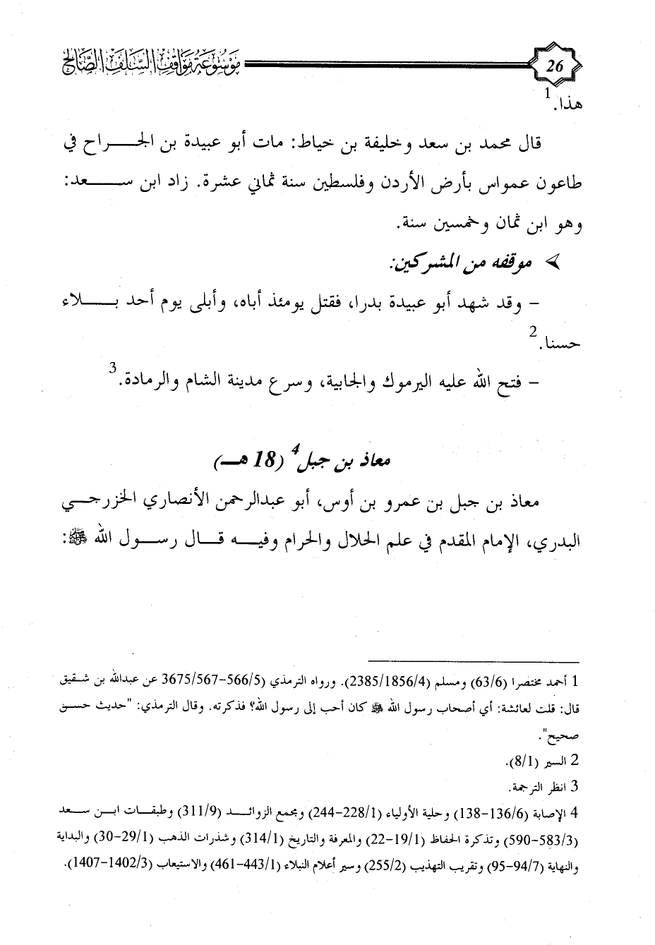 (¬4) الإصابة (6/ 136 - 138) وحلية الأولياء (1/ 228 - 244) ومجمع الزوائد (9/ 311) وطبقات ابن سعد (3/ 583 - 590) وتذكرة الحفاظ (1/ 19 - 22) والمعرفة والتاريخ (1/ 314) وشذرات الذهب (1/ 29 - 30) والبداية والنهاية (7/ 94 - 95) وتقريب التهذيب (2/ 255) وسير أعلام النبلاء (1/ 443 - 461) والاستيعاب (3/ 1402 - 1407).