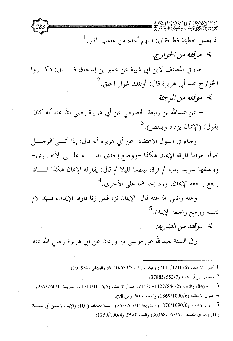 (¬1) أصول الاعتقاد (6/ 1210/2141) وعبد الرزاق (3/ 533/6110) والبيهقي (4/ 9 - 10).