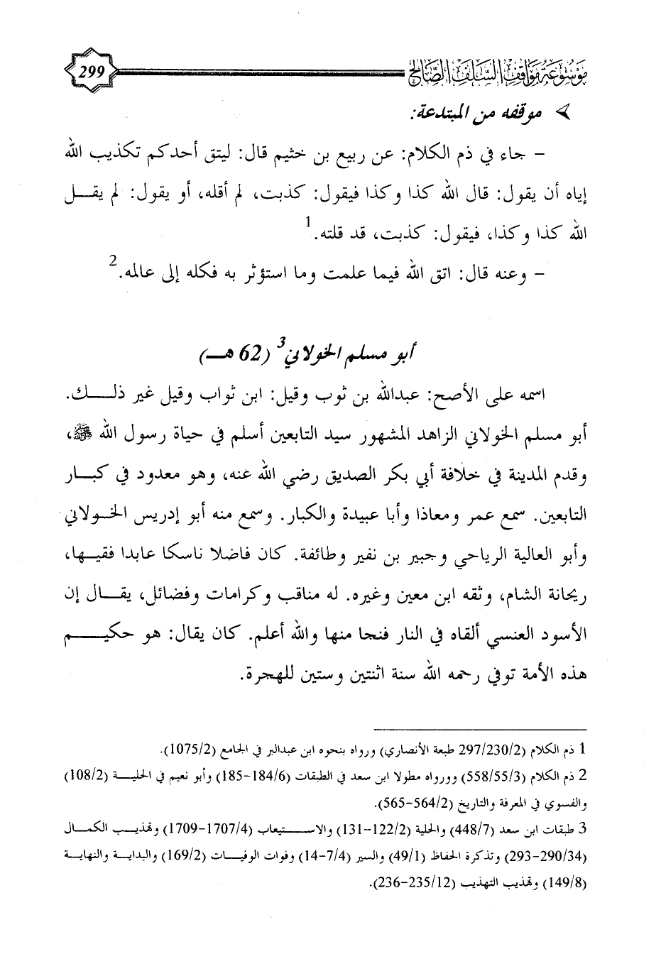 (¬2) ذم الكلام (3/ 55/558) وورواه مطولا ابن سعد في الطبقات (6/ 184 - 185) وأبو نعيم في الحلية (2/ 108) والفسوي في المعرفة والتاريخ (2/ 564 - 565).
