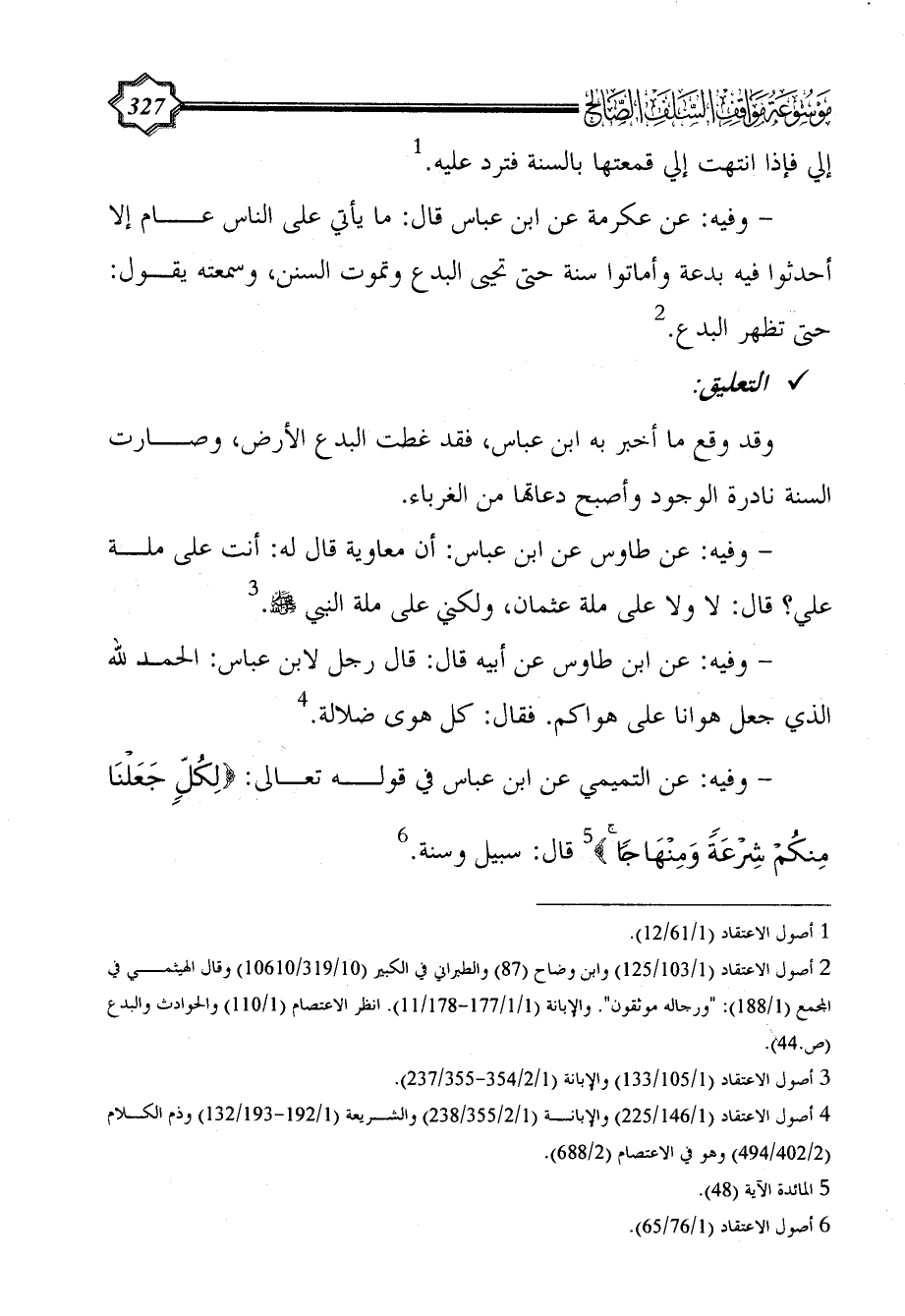(¬6) أصول الاعتقاد (1/ 76/65).