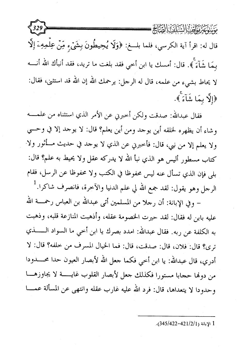 (¬1) الإبانة (1/ 2/421 - 422/ 345).