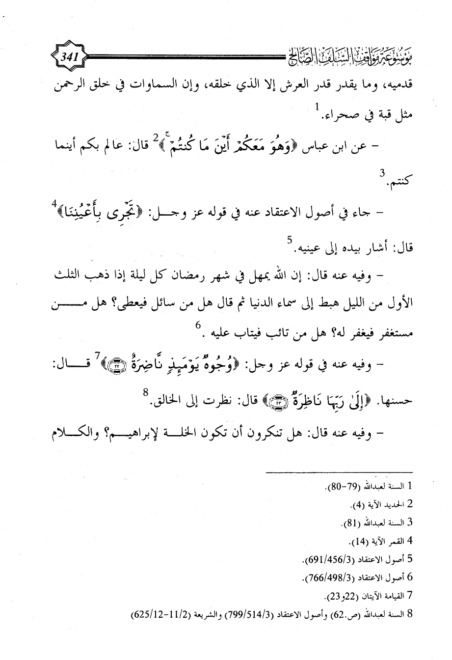 (¬8) السنة لعبد الله (ص.62) وأصول الاعتقاد (3/ 514/799) والشريعة (2/ 11 - 12/ 625)