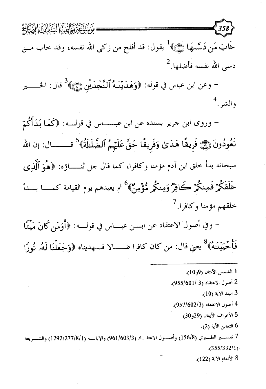 (¬7) تفسير الطبري (8/ 156) وأصول الاعتقاد (3/ 603/961) والإبانة (1/ 8/277/ 1292) والشريعة (1/ 332/355).