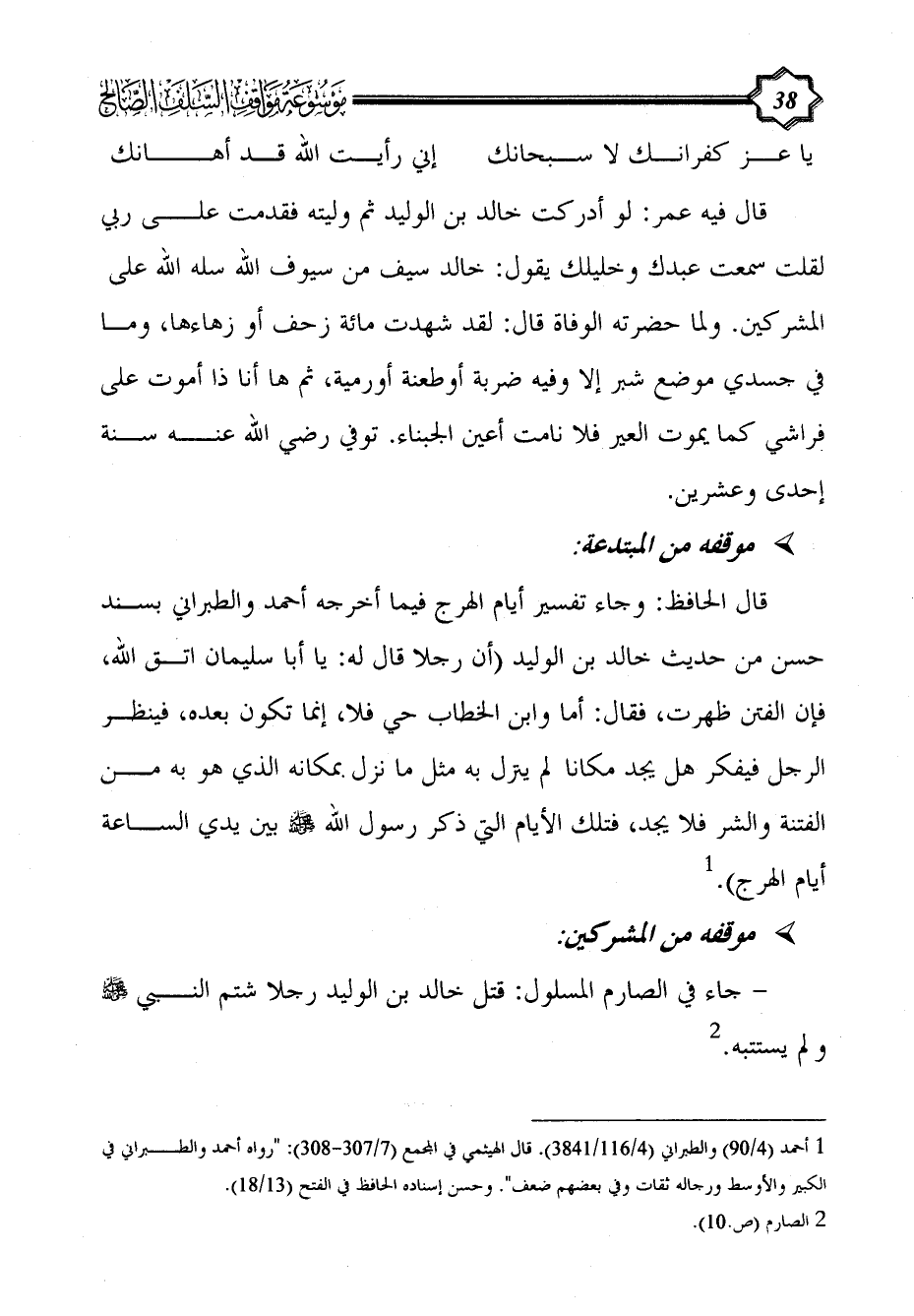 - جاء في الصارم المسلول: قتل خالد بن الوليد رجلا شتم النبي - صلى الله عليه وسلم - ولم يستتبه. (¬2)