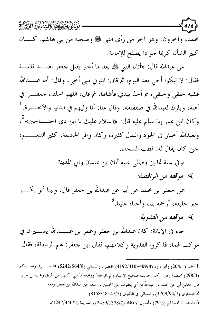 (¬3) المستدرك للحاكم (3/ 79) وأصول الاعتقاد (7/ 1378/2459) والشريعة (2/ 440/1247).
