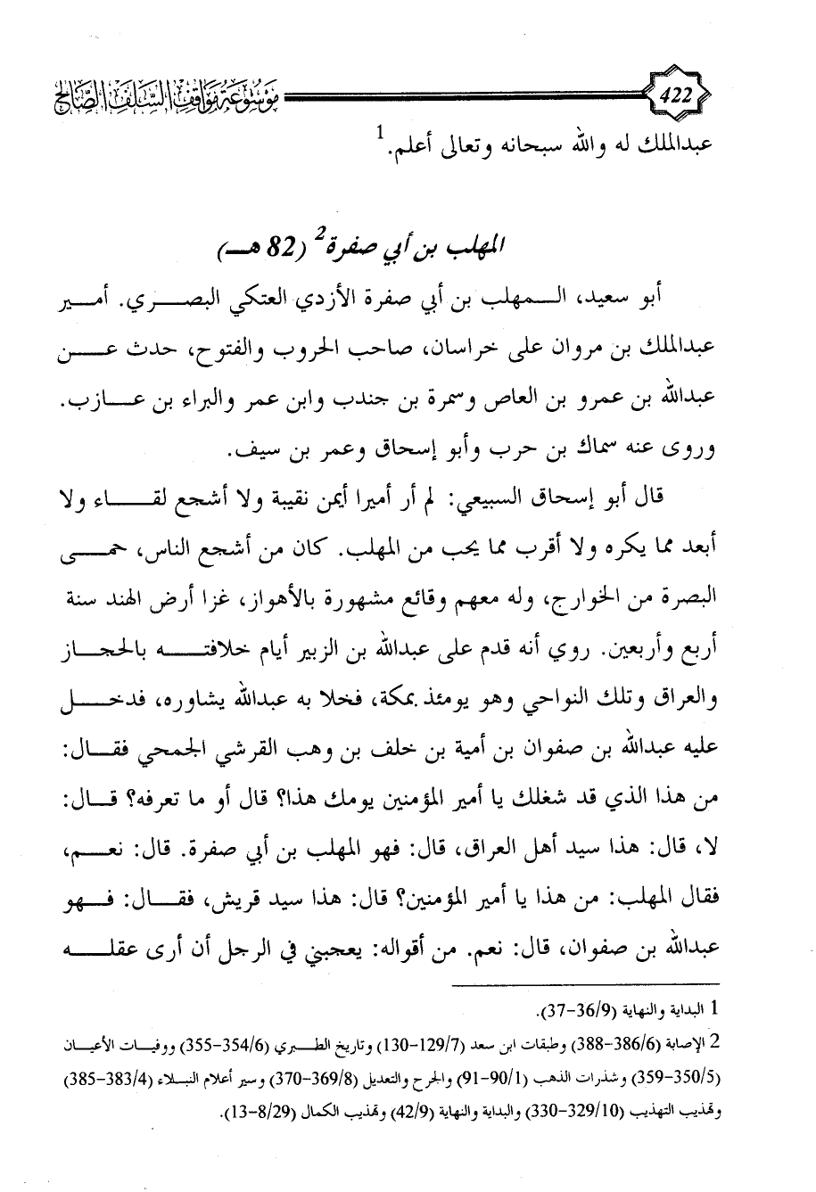 (¬2) الإصابة (6/ 386 - 388) وطبقات ابن سعد (7/ 129 - 130) وتاريخ الطبري (6/ 354 - 355) ووفيات الأعيان (5/ 350 - 359) وشذرات الذهب (1/ 90 - 91) والجرح والتعديل (8/ 369 - 370) وسير أعلام النبلاء (4/ 383 - 385) وتهذيب التهذيب (10/ 329 - 330) والبداية والنهاية (9/ 42) وتهذيب الكمال (29/ 8 - 13).