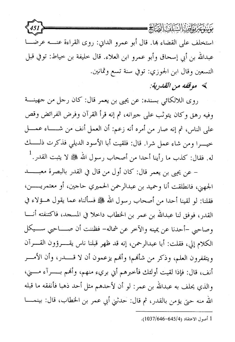 (¬1) أصول الاعتقاد (4/ 645 - 646/ 1037).