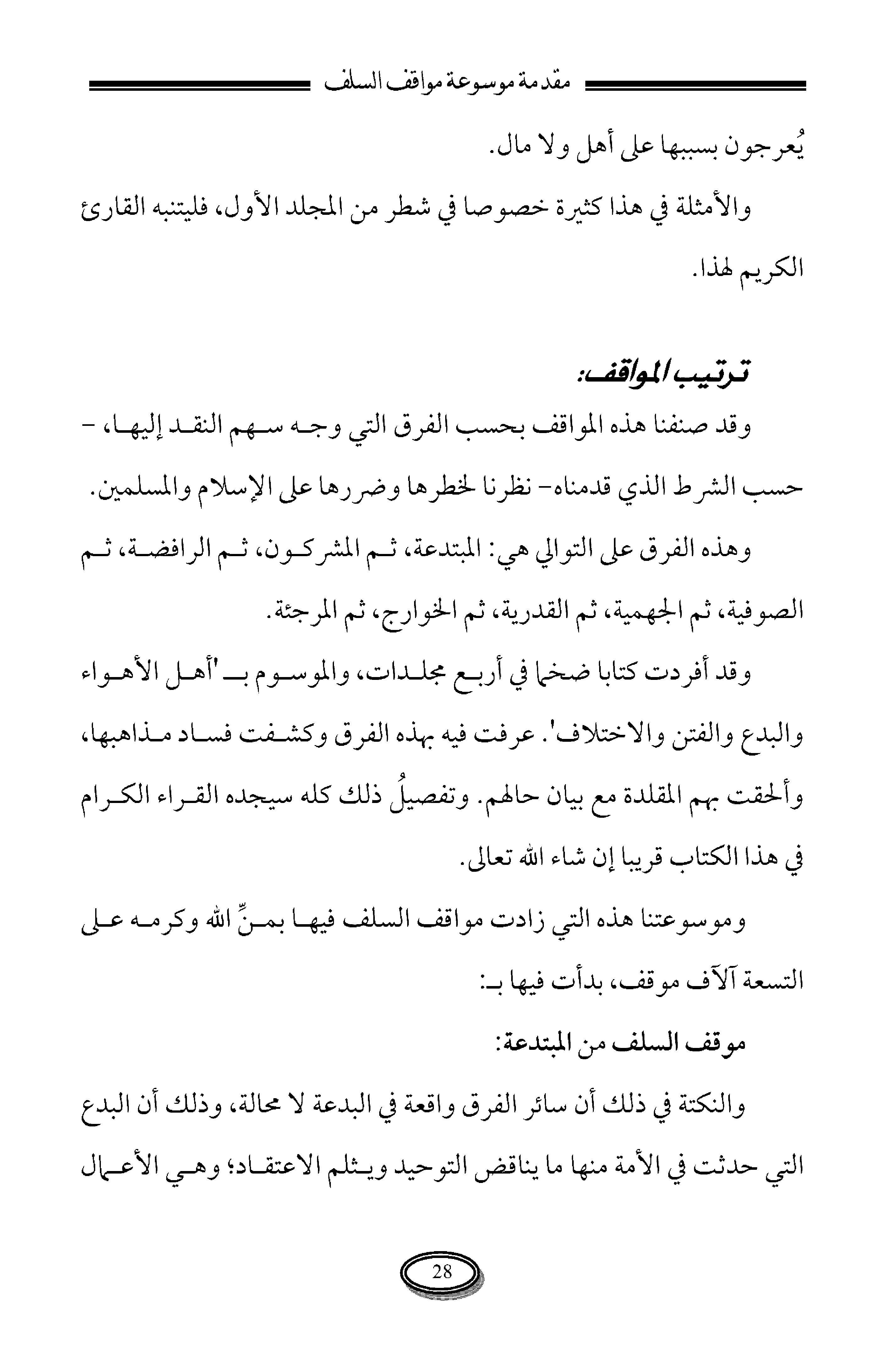 وموسوعتنا هذه التي زادت مواقف السلف فيها بمنِّ الله وكرمه على التسعة آلآف موقف، بدأت فيها بـ: