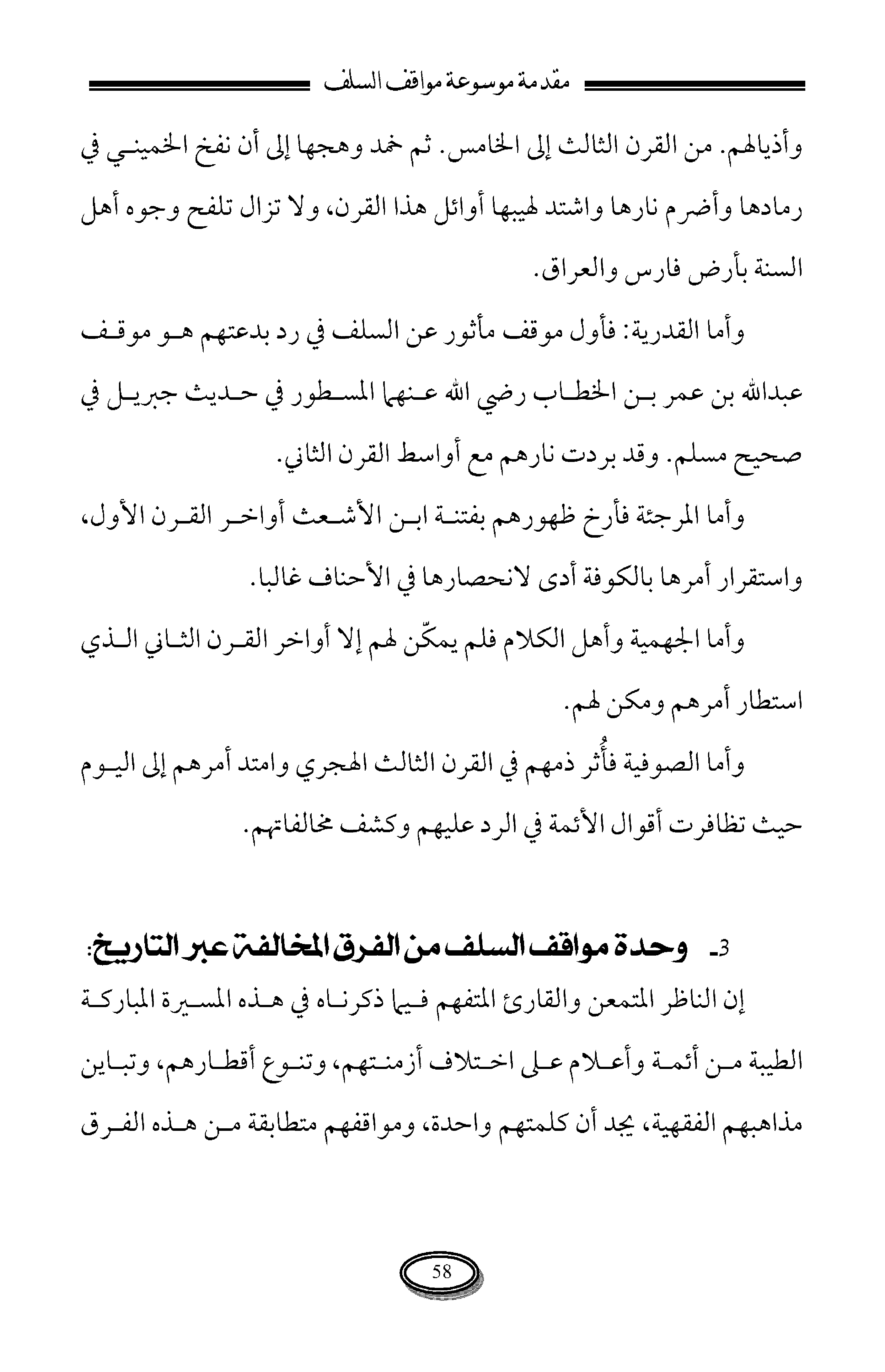 3 - وحدة مواقف السلف من الفرق المخالفة عبر التاريخ: