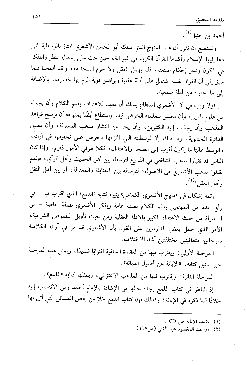 إذ الناظر في كتاب اللمع يجده خاليًا من الإشادة بالإمام أحمد ومن الانتساب إليه خلافًا لما ذكره في الإبانة؛ وكذلك فإن كتاب اللمع خلا من بعض المسائل التي أتى بها