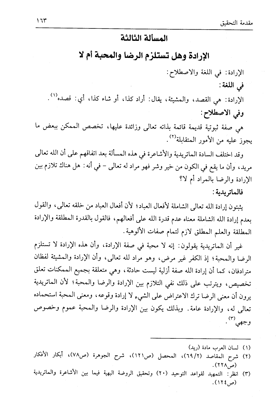 الإرادة وهل تستلزم الرضا والمحبة أم لا