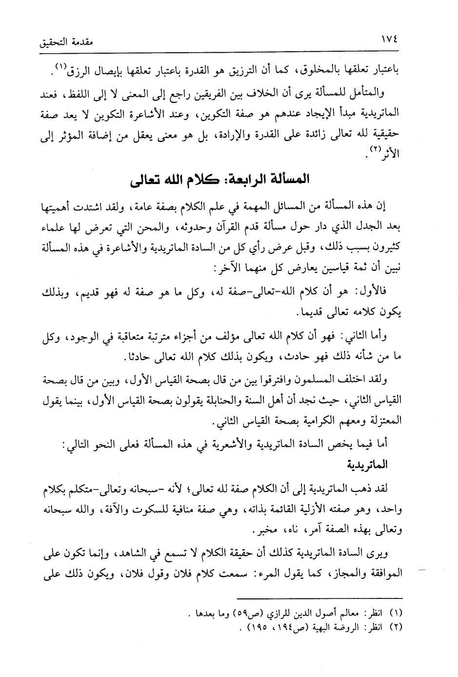 إن هذه المسألة من المسائل المهمة في علم الكلام بصفة عامة، ولقد اشتدت أهميتها بعد الجدل الذي دار حول مسألة قدم القرآن وحدوثه، والمحن التي تعرض لها علماء كثيرون بسبب ذلك، وقبل عرض رأي كل من السادة الماتريدية والأشاعرة في هذه المسألة نبين أن ثمة قياسين يعارض كل منهما الآخر: