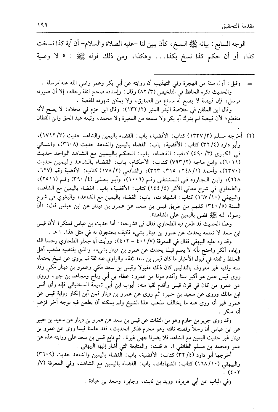 الوجه السابع: بيانه - صَلَّى اللَّهُ عَلَيهِ وَسَلَّمَ - النسخ، كأن يبين لنا - عليه الصلاة والسلام - أن آية كذا نسخت كذا، أو أن حكم كذا نسخ بكذا. . . وهكذا، ومن ذلك قوله - صَلَّى اللَّهُ عَلَيهِ وَسَلَّمَ -: " لا وصية