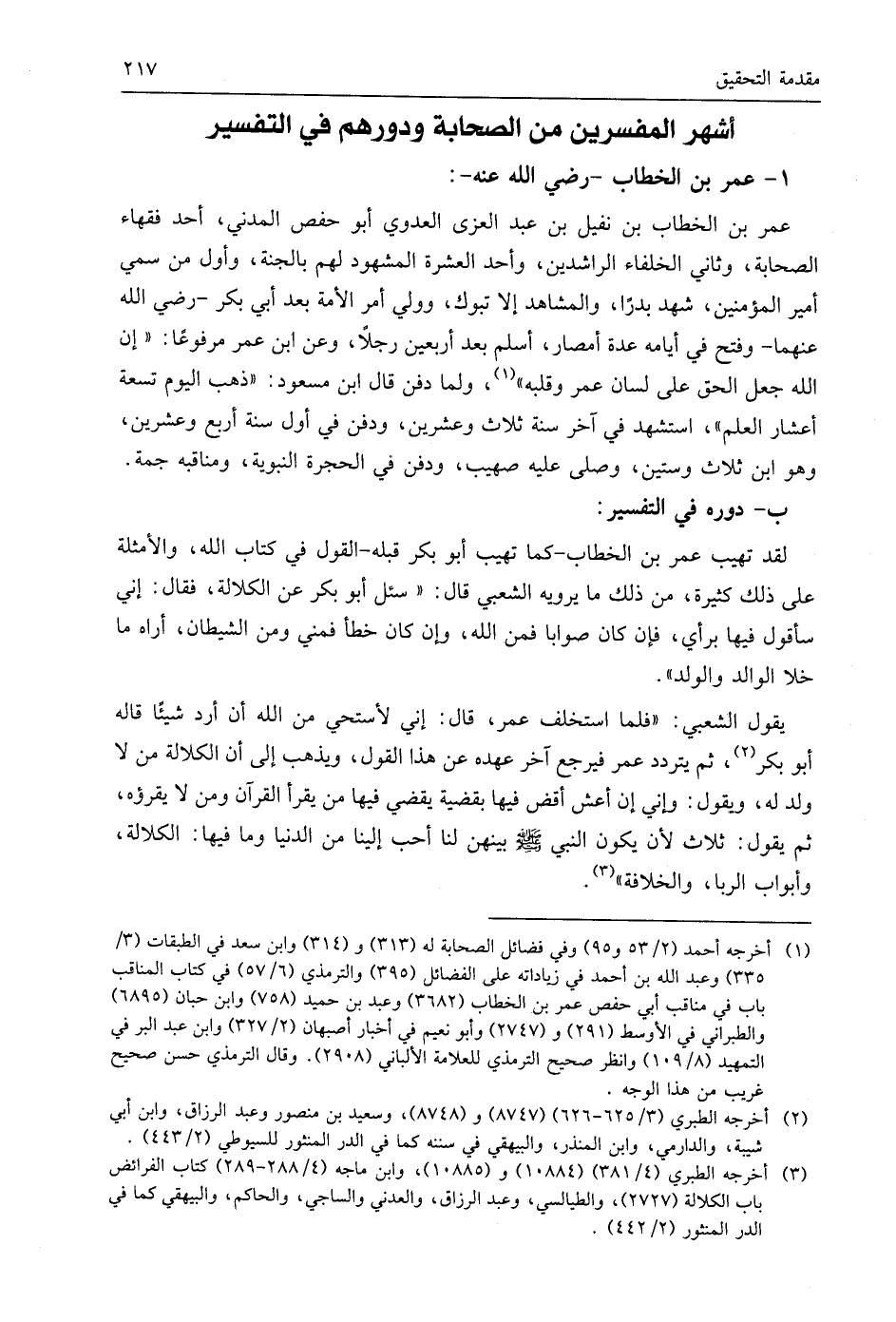 لقد تهيب عمر بن الخطاب -كما تهيب أبو بكر قبله- القول في كتاب اللَّه، والأمثلة على ذلك كثيرة، من ذلك ما يرويه الشعبي قال: " سئل أبو بكر عن الكلالة، فقال: إني سأقول فيها برأي، فإن كان صوابًا فمن اللَّه، وإن كان خطأ فمني ومن الشيطان، أراه ما خلا الوالد والولد ".