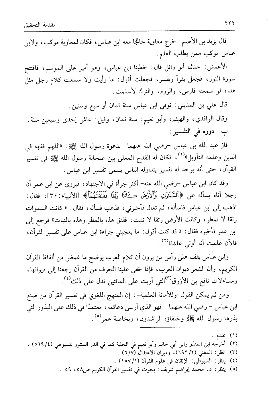 وابن عَبَّاسٍ يقف على رأس من يرون أن كلام العرب يوضح ما غمض من ألفاظ القرآن الكريم، وأن الشعر ديوان العرب، فإذا خفي علينا الحرف من القرآن رجعنا إلى ديوانها، ومساءلات نافع بن الأزرق التي أربت على المائتين تدل على ذلك.