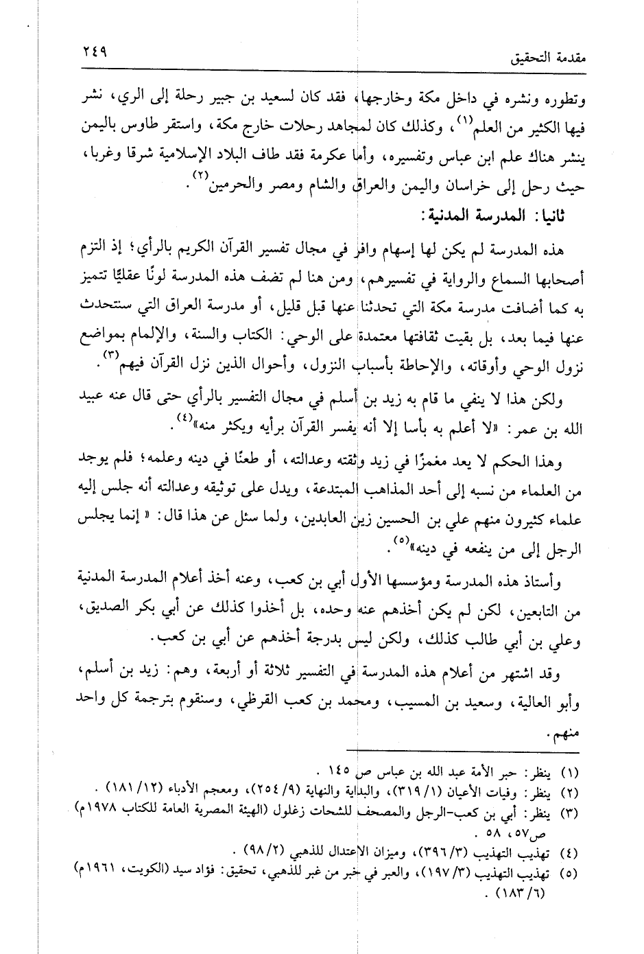 وقد اشتهر من أعلام هذه المدرسة في التفسير ثلاثة أو أربعة، وهم: زيد بن أسلم، وأبو العالية، وسعيد بن المسيب، ومُحَمَّد بن كعب القرظي، وسنقوم بترجمة كل واحد منهم.