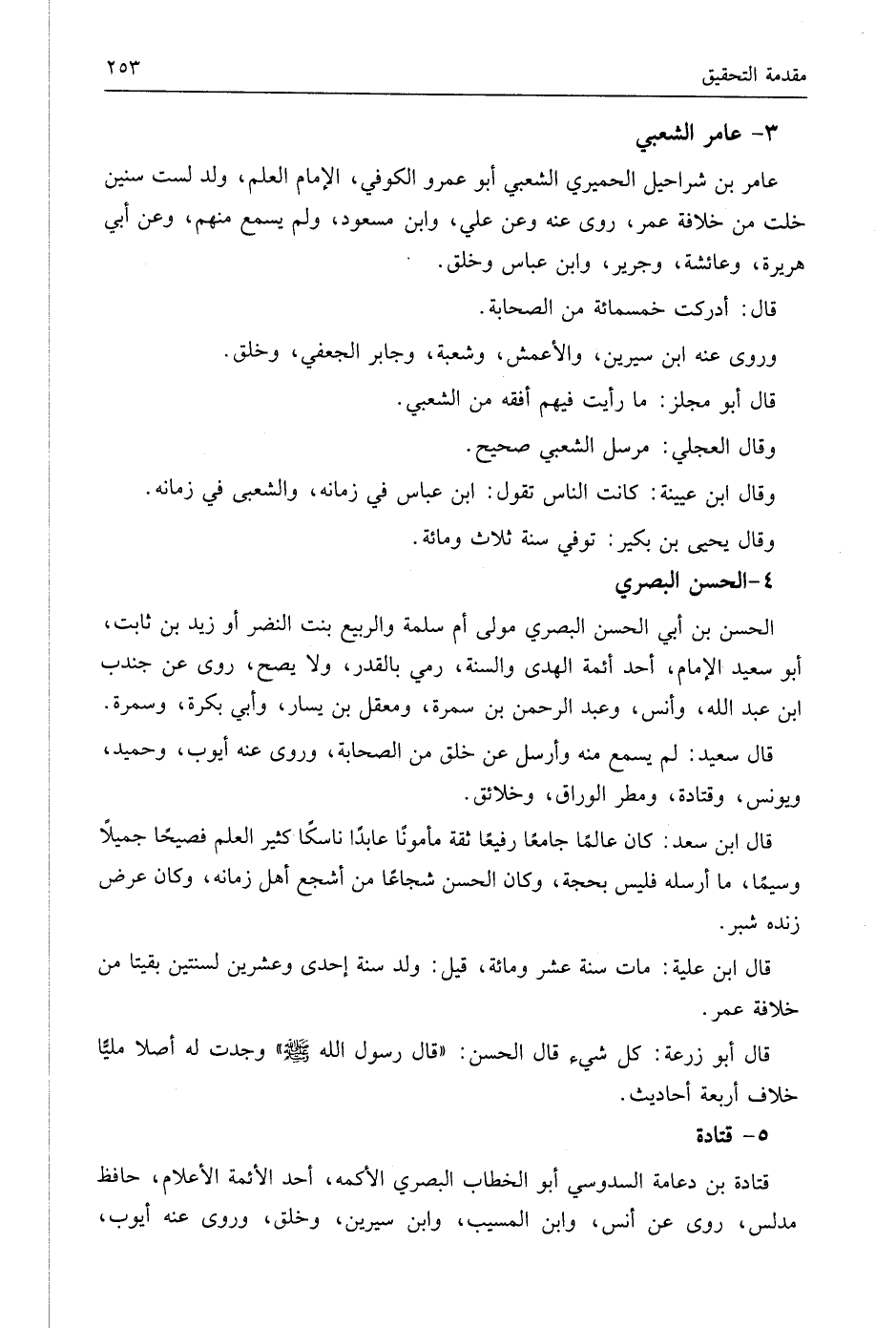 عامر بن شراحبيل الحميري الشعبي أبو عمرو الكوفي، الإمام العلم، ولد لست سنين خلت من خلافة عمر، روى عنه وعن علي، وابن مسعود، ولم يسمع منهم، وعن أبي هريرة، وعائشة، وجرير، وابن عَبَّاسٍ وخلق.