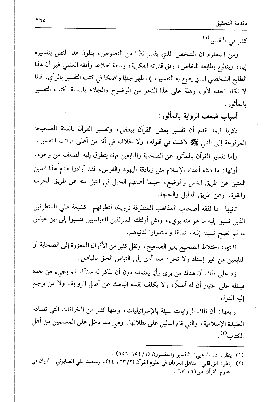 وأما تفسير القرآن بالمأثور عن الصحابة والتابعين فإنه يتطرق إليه الضعف من وجوه: أولها: ما دسَّه أعداء الإسلام مثل زنادقة اليهود والفرس، فقد أرادوا هدم هذا الدِّين المتين عن طريق الدس والوضع، حينما أعيتهم الحيل في النيل منه عن طريق الحرب والقوة، وعن طريق الدليل والحجة.
