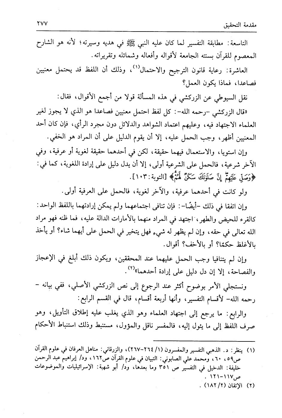 ونستجلي الأمر بوضوح أكثر عند الرجوع إلى نص الزركشي الأصلي، ففي بيانه - رحمه اللَّه - لأقسام التفسير، وأنها أربعة أقسام، قال في القسم الرابع: