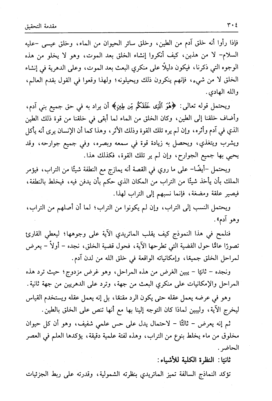 ثم إنه يعرض -ثالثًا- لاحتمال يدل على حس علمي شفيف، وهو أن كل حيوان مخلوق من ماء يخلط بنوع من التراب، وهذه لفتة علمية دقيقة، يؤكدها العلم في العصر الحاضر.