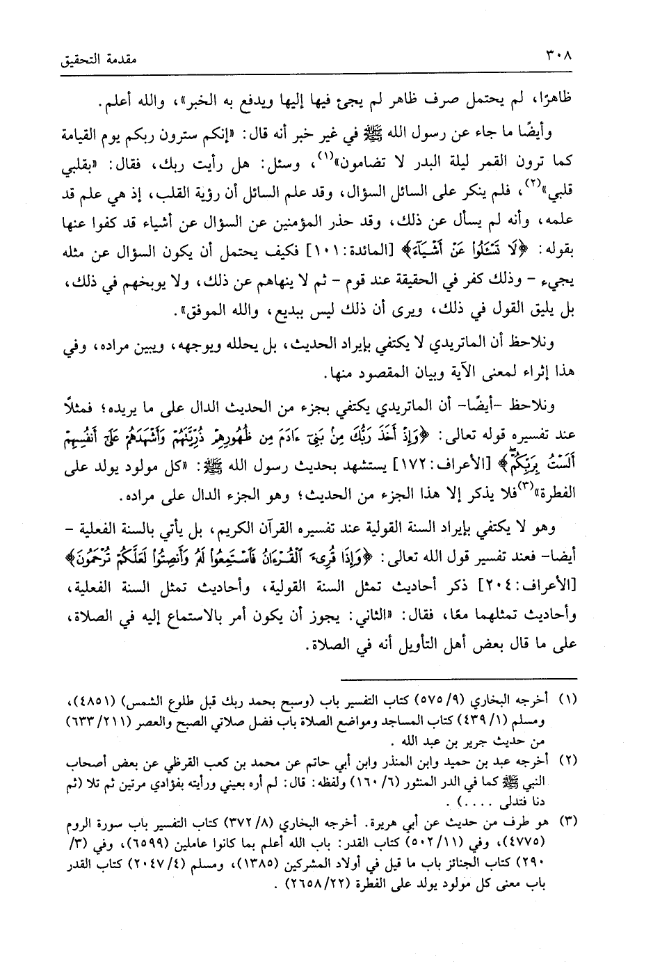 ونلاحظ أن الماتريدي لا يكتفي بإيراد الحديث، بل يحلله ويوجهه، ويبين مراده، وفي هذا إثراء لمعنى الآية وبيان المقصود منها.