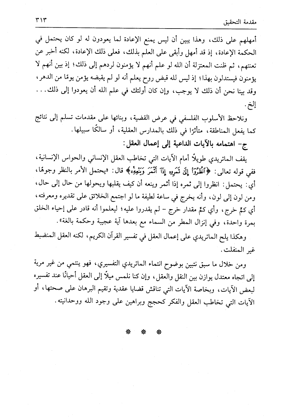 وهكذا يلح الماتريدي على إعمال العقل في تفسير القرآن الكريم، لكنه العقل المنضبط غير المنفلت.