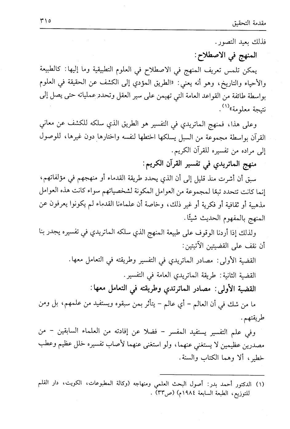 القضية الثانية: طريقة الماتريدي العامة في التفسير.