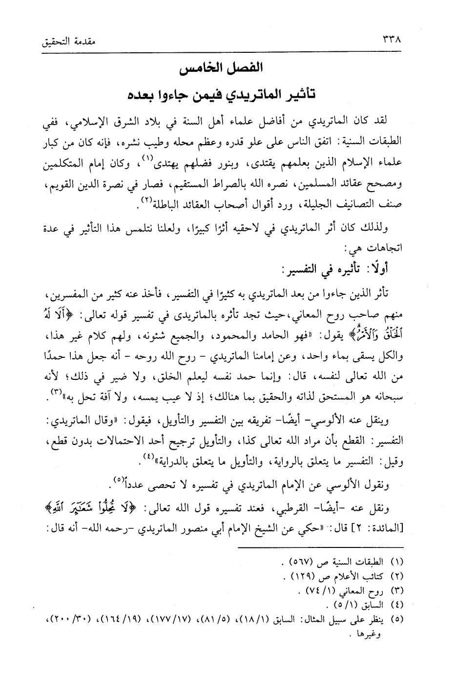 ونقول الآلوسي عن الإمام الماتريدي في تفسيره لا تحصى عددًا.