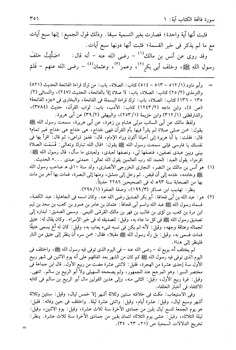 وقد رُويَ عن أنس بن مالك - رَضِيَ اللَّهُ عَنْهُ - أنه قال: " صلَّيْتُ خلفَ رسولِ اللهِ - صَلَّى اللَّهُ عَلَيهِ وَسَلَّمَ -، وخلف أبي بكرٍ، وعمرَ، وعثمان - رضي اللَّه عنهم - فَلمْ