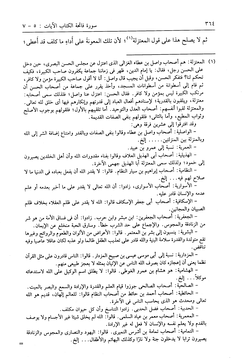 ثم لا يصلح هذا على قول المعتزلة؛ لأن تلك المعونةَ على أَداءِ ما كلف قد أعطى؛