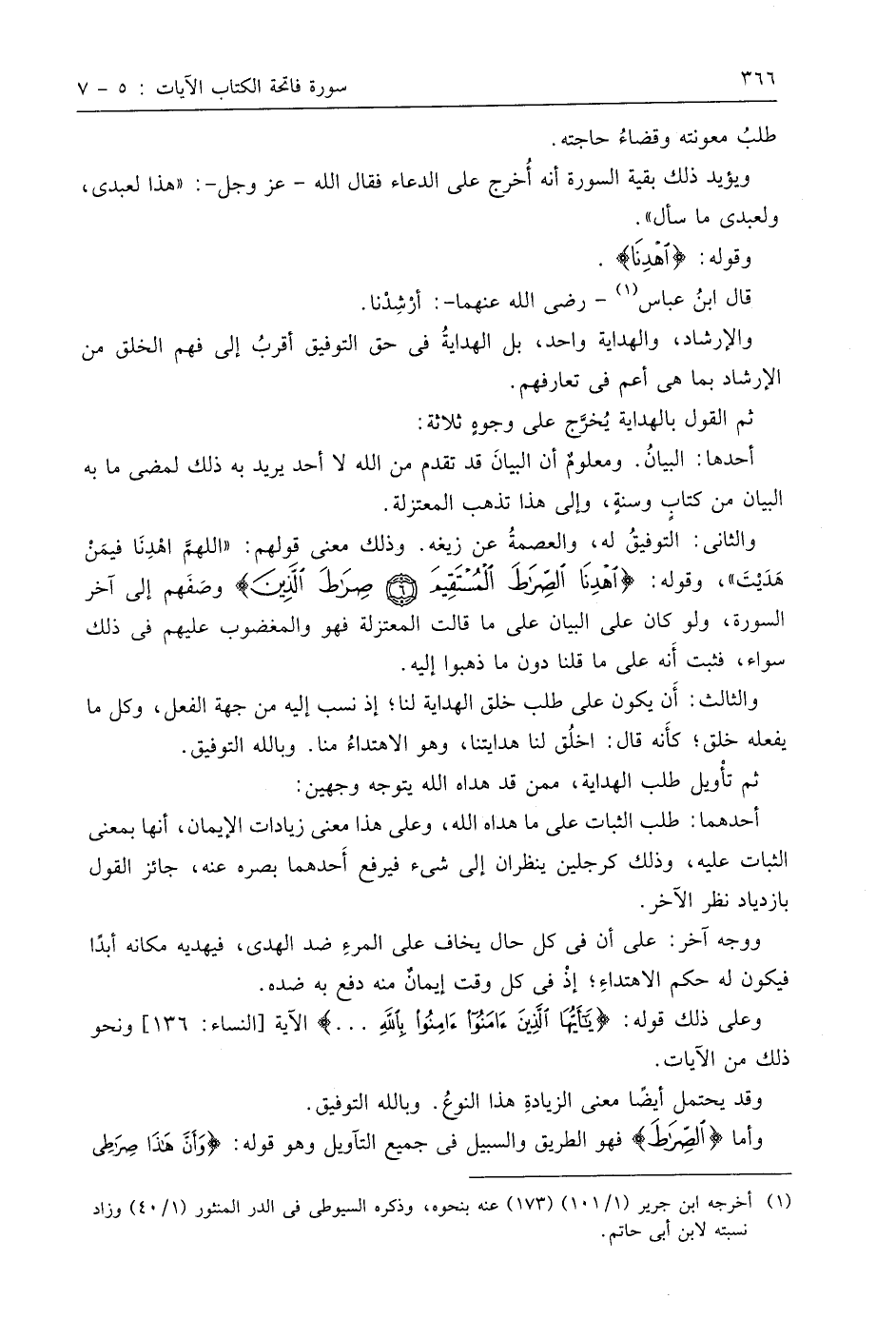 والثاني: التوفيقُ له، والعصمةُ عن زيغه. وذلك معنى قولهم: " اللهمَّ اهْدِنَا فيمَنْ هَدَيْتَ "، وقوله: (اهْدِنَا الصِّرَاطَ الْمُسْتَقِيمَ (6) صِرَاطَ الَّذِينَ)، ووصَفَهم إلى آخر السورة، ولو كان على البيان على ما قالت المعتزلة فهو والمغضوب عليهم في ذلك سواء، فثبت أَنه على ما قلنا دون ما ذهبوا إليه.