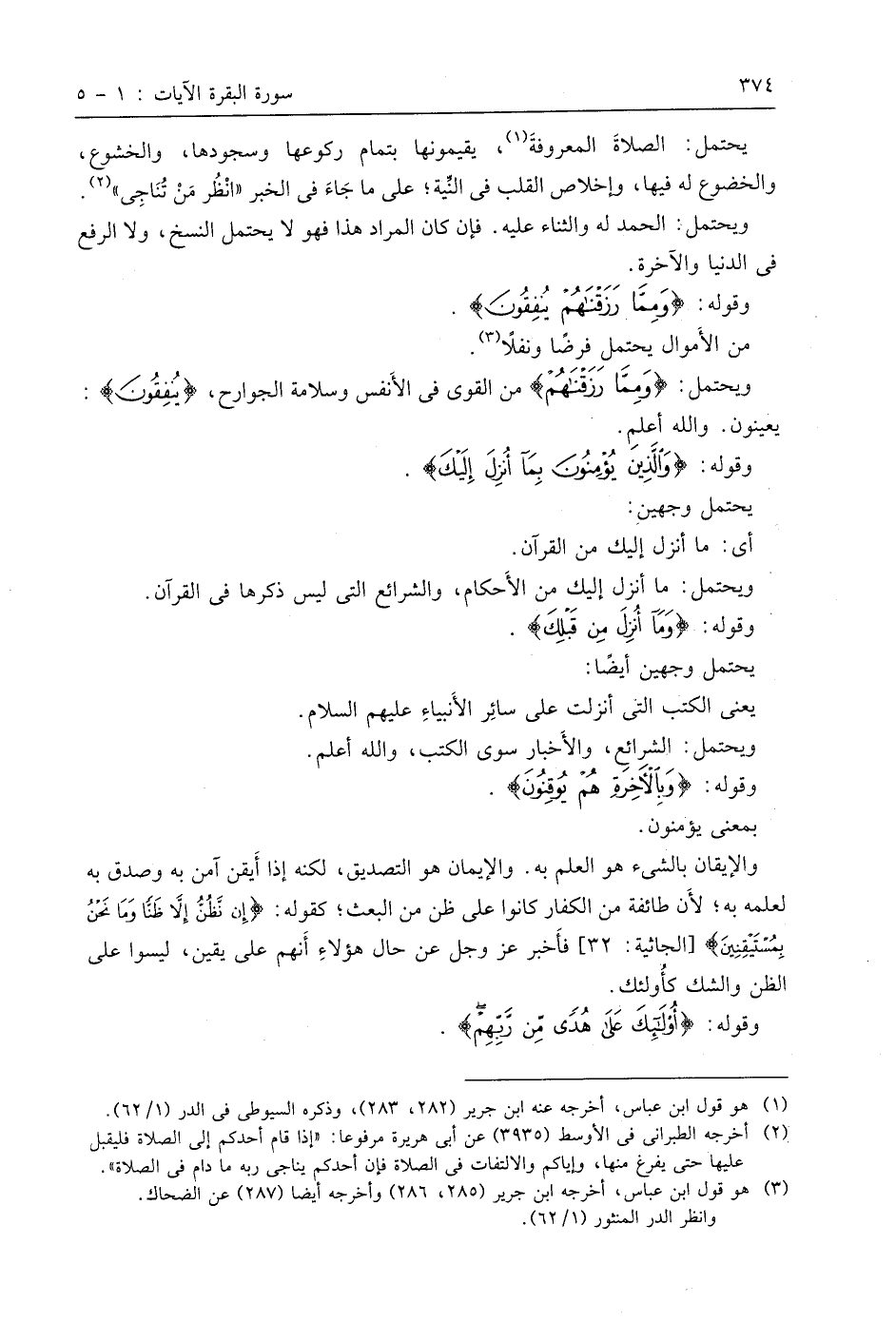 والإيقان بالشيء هو العلم به. والإيمان هو التصديق، لكنه إذا أَيقن آمن به وصدق به لعلمه به؛ لأَن طائفة من الكفار كانوا على ظن من البعث؛ كقوله: (إِنْ نَظُنُّ إِلَّا ظَنًّا وَمَا نَحْنُ بِمُسْتَيْقِنِينَ)، فأخبر عَزَّ وَجَلَّ عن حال هَؤُلَاءِِ أَنهم على يقين، ليسوا على الظن والشك كأُولئك.