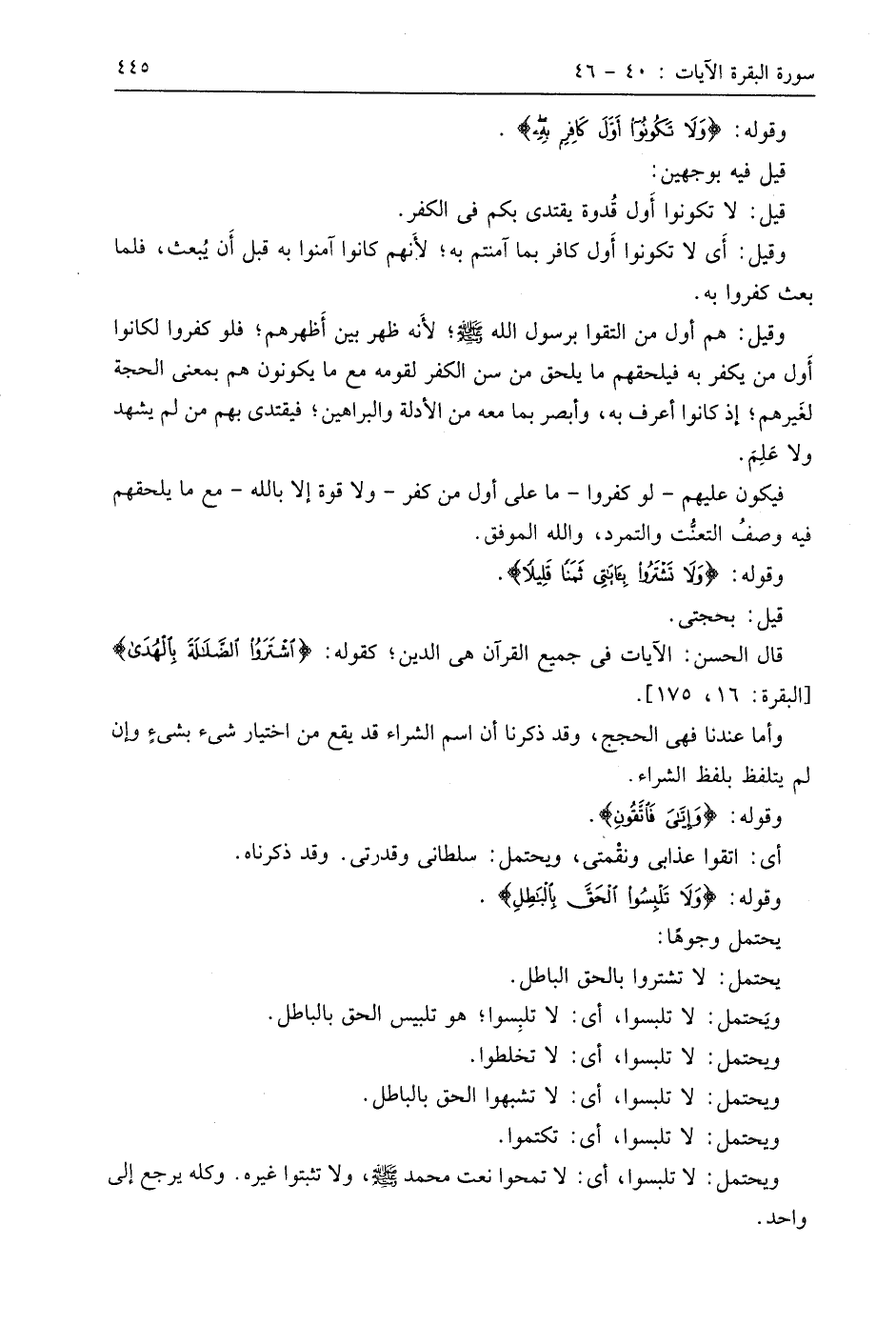 وقوله: (وَلَا تَشْتَرُوا بِآيَاتِي ثَمَنًا قَلِيلًا).