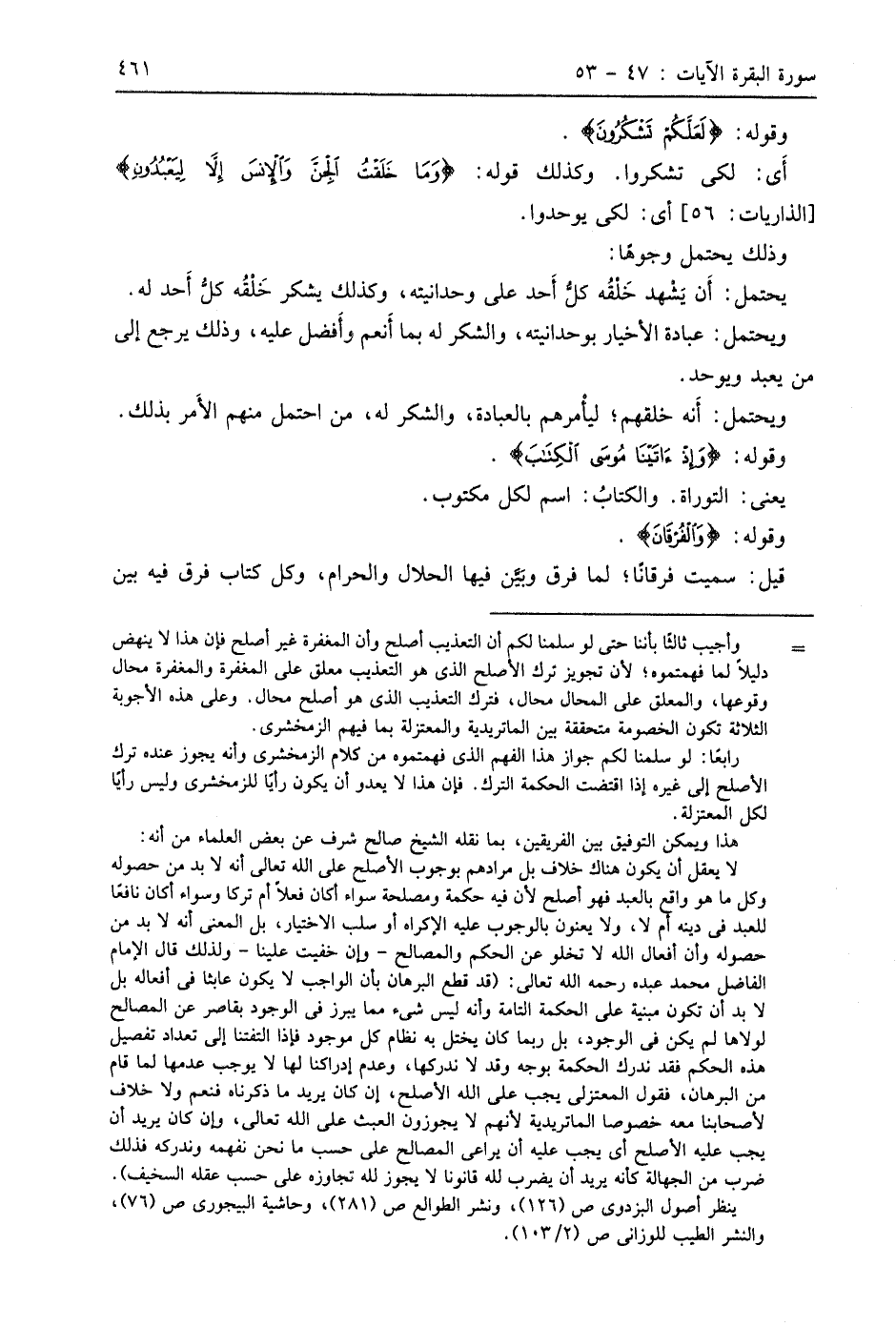 وقوله: (لَعَلَّكُمْ تَشْكُرُونَ).