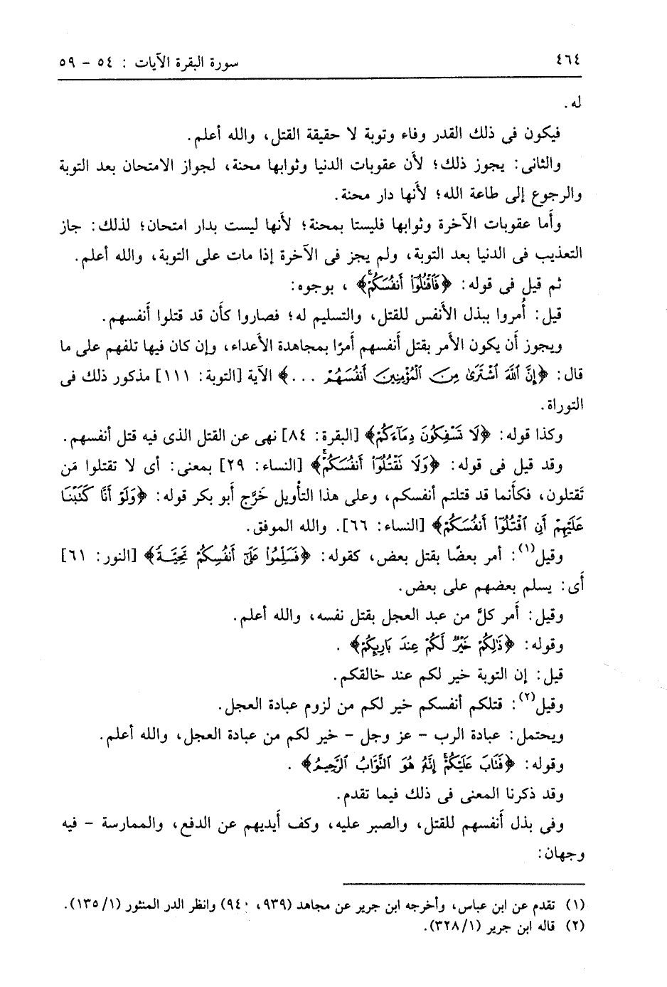 ويجوز أن يكون الأَمر بقتل أَنفسهم أمرًا بمجاهدة الأَعداء، وإن كان فيها تلفهم على ما قال: (إِنَّ اللَّهَ اشْتَرَى مِنَ الْمُؤْمِنِينَ أَنْفُسَهُمْ. . .) الآية، مذكور ذلك في التوراة.