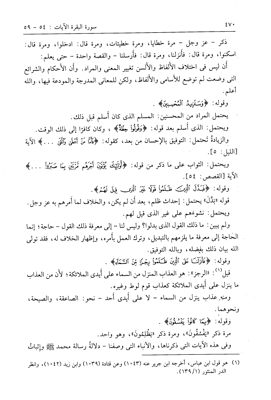 ولم يبين: ما ذلك القول الذي بدلوا؟ وليس لنا -إلى معرفة ذلك القول- حاجة؛ إنما الحاجة إلى معرفة ما يلزمهم بالتبديل، وترك العمل بأَمره، وإظهار الخلاف له، فقد تولى اللَّه بيان ذلك بمضله، وباللَّه التوفيق.