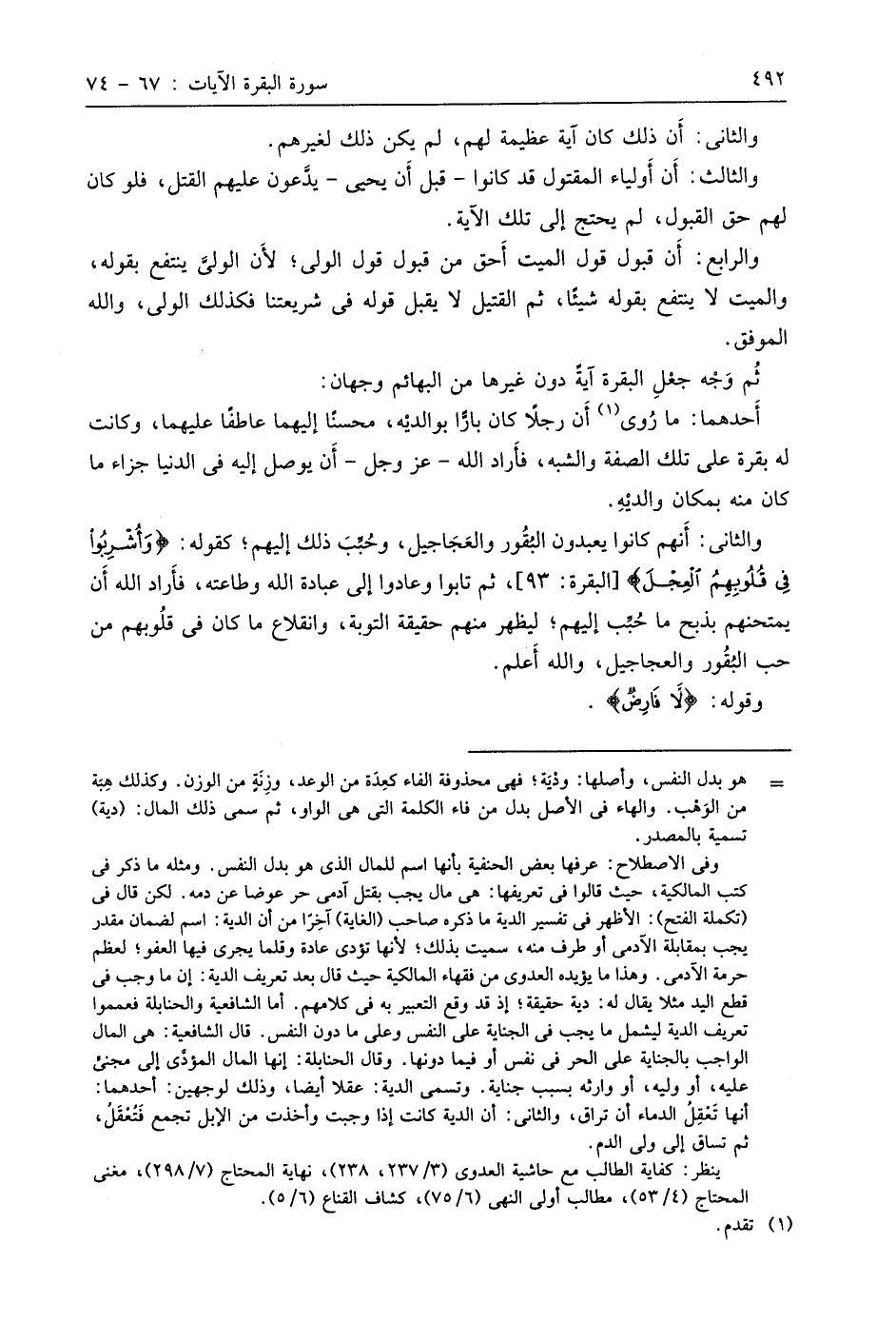 والثاني: أَنهم كانوا يعبدون البُقُور والعَجَاجيل، وحُببَ ذلك إليهم؛ كقوله: (وَأُشْرِبُوا فِي قُلُوبِهِمُ الْعِجْلَ)، ثم تابوا وعادوا إلى عبادة اللَّه وطاعته، فأَراد اللَّه أَن يمتحنهم بذبح ما حُبِّب إليهم؛ ليظهر منهم حقيقة التوبة، وانقلاع ما كان في قلُوبهم من حب البُقُور والعجاجيل، واللَّه أَعلم.