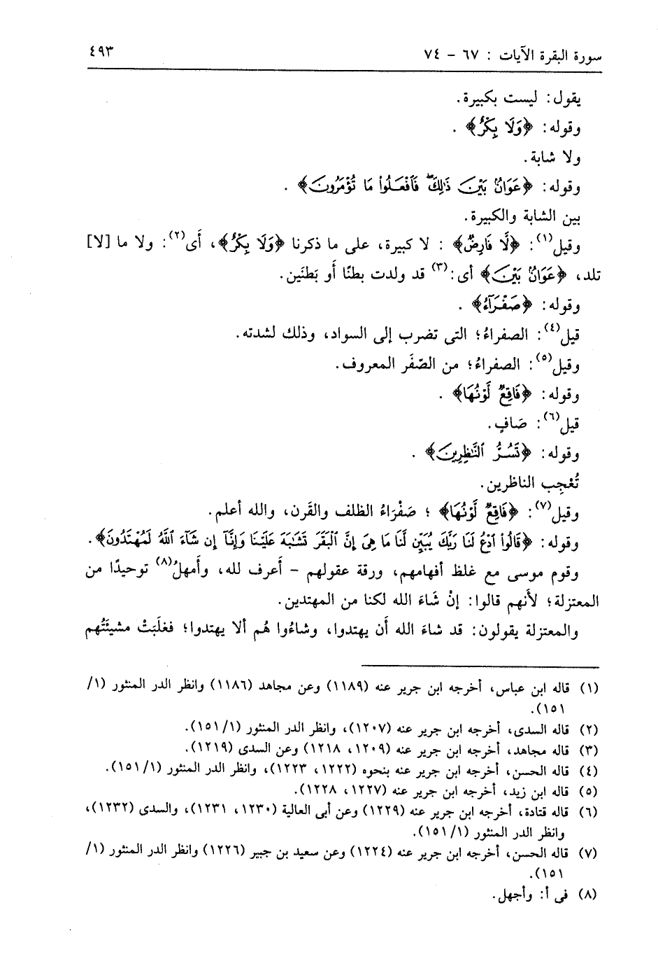 وقوله: (صَفْرَاءُ (69)
