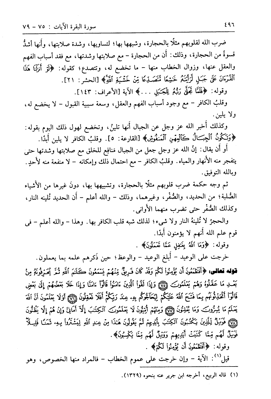 والحجرُ لا تُلينهُ النار ولا شيء؛ لذلك شبه قلب الكافر بها. وهذا - واللَّه أعلمَ - في قوم علم اللَّه أَنهم لا يؤمنون أَبدًا.