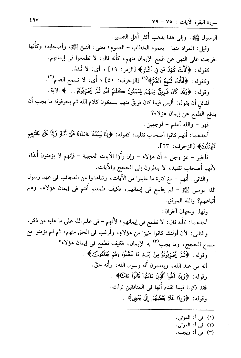 والثاني: أَنهم - معَ كثرة ما عاينوا من الآيات، وشاهدوا من العجائب في عهد رسول اِلله موسى - صَلَّى اللَّهُ عَلَيهِ وَسَلَّمَ - لم يطمع في إيمانهم، فكيف طمعتم أَنتم في إيمان هَؤُلَاءِ، وهم أتباعهم؟ واللَّه الموفق.