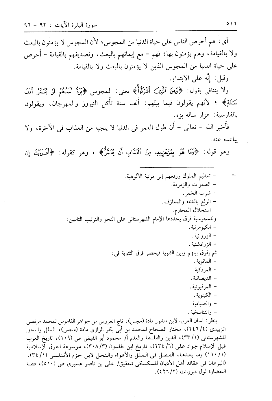 ولا يتنافى بقول: (وَمِنَ الَّذِينَ أَشْرَكُوا) ويعني: المجوس (يَوَدُّ أَحَدُهُمْ لَوْ يُعَمَّرُ أَلْفَ سَنَةٍ)؛ لأنهم يقولون فيما بينَهم: أَلف سنة تأْكل النيروز والمهرجان، ويقولون بالفارسية: هزار ساله بزه.